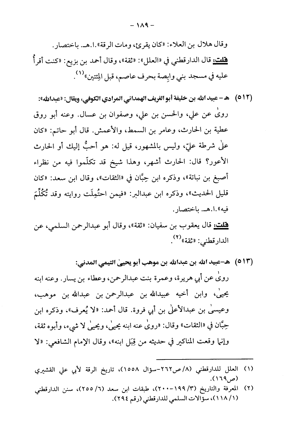 (¬2) المعرفة والتاريخ (3/ 199 - 200)، طبقات ابن سعد (6/ 255)، سنن الدارقطني (1/ 118)، سؤالات السلمي للدارقطني (رقم 294).