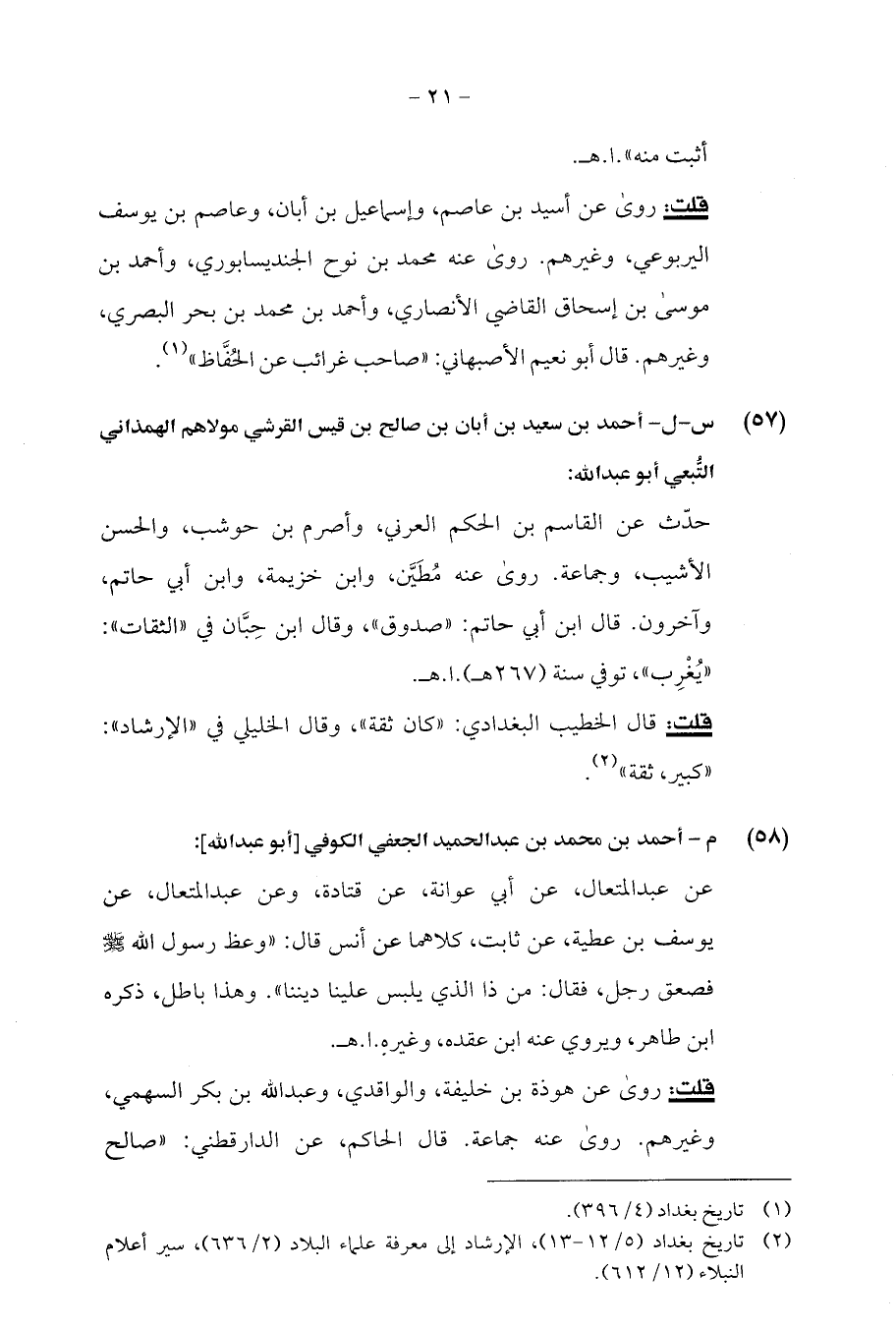 (¬2) تاريخ بغداد (5/ 12 - 13)، الإرشاد إلى معرفة علماء البلاد (2/ 636)، سير أعلام النبلاء (12/ 612).