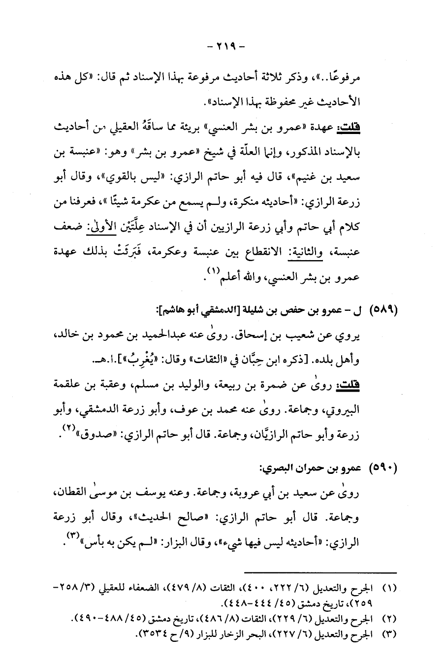 (¬3) الجرح والتعديل (6/ 227)، البحر الزخار للبزار (9/ ح 3534).