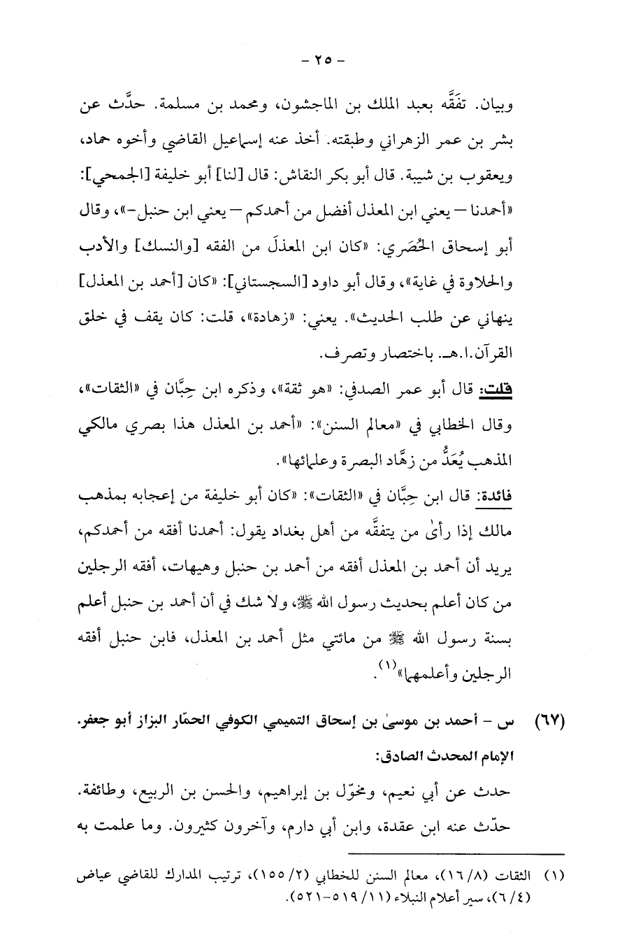 (67) س- أحمد بن موسى بن إسحاق التميمي الكوفي الحمّار البزاز أبو جعفر. الإمام المحدث الصادق: