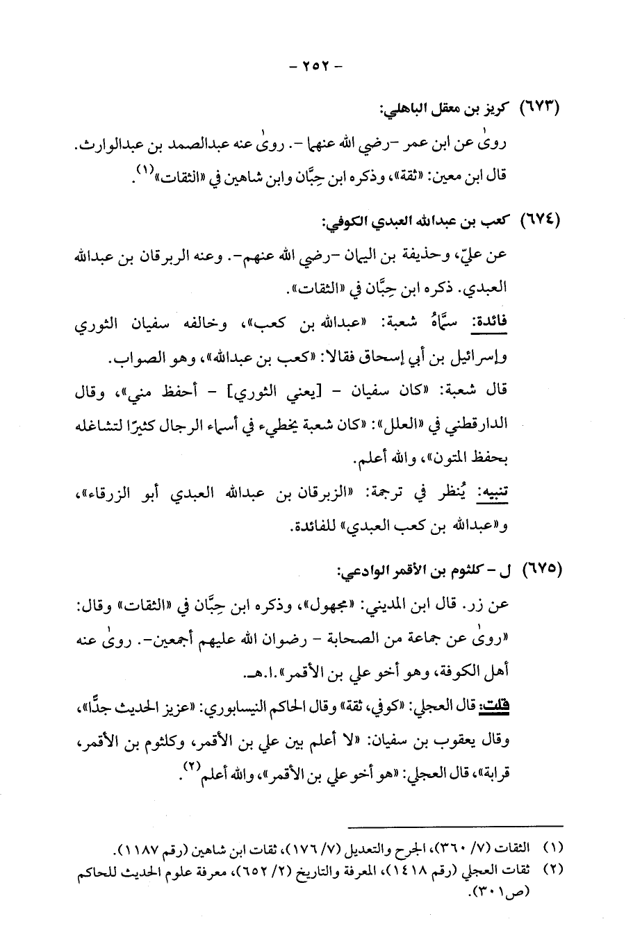 (¬2) ثقات العجلي (رقم 1418)، المعرفة والتاريخ (2/ 652)، معرفة علوم الحديث للحاكم (ص 301).