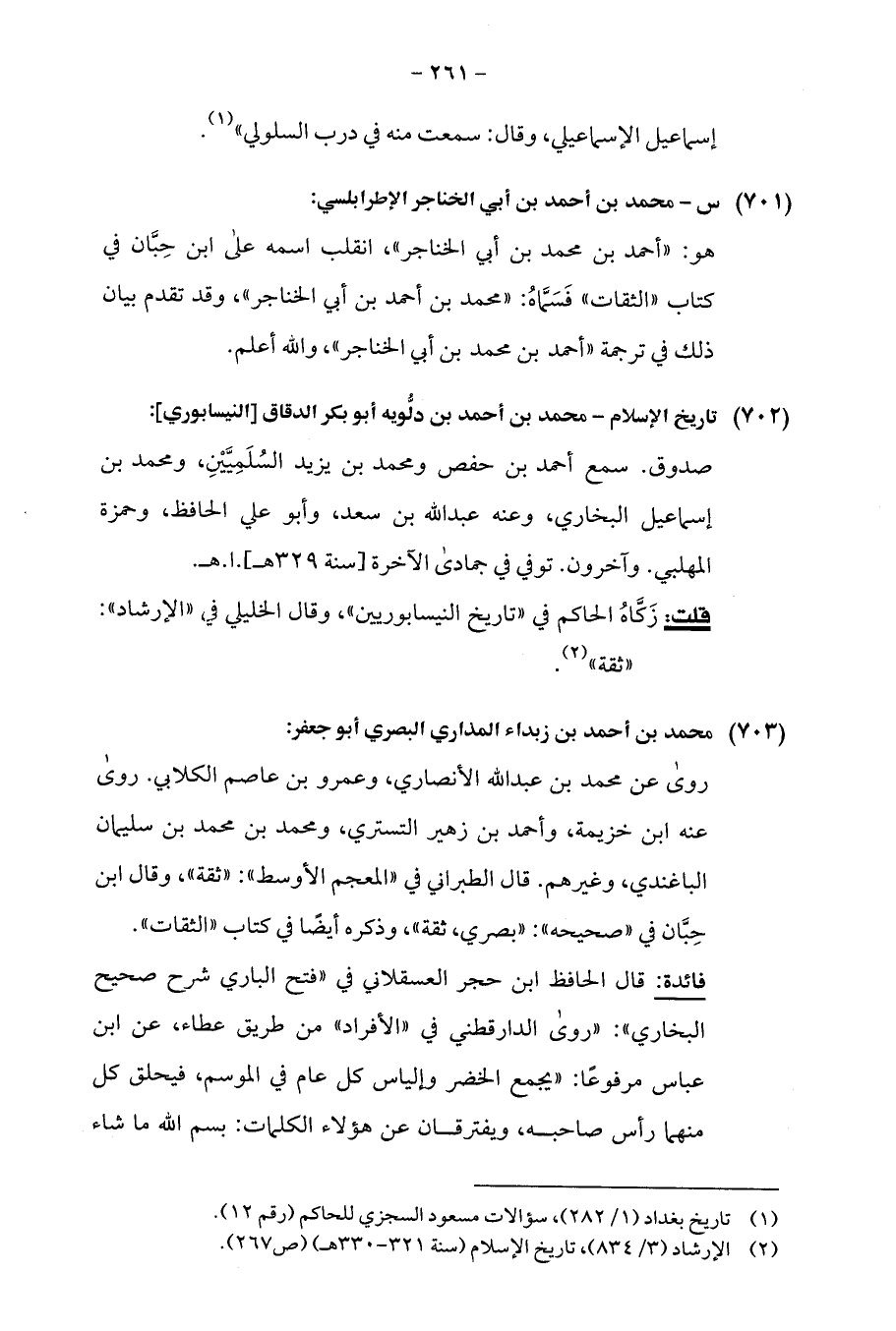 (¬1) تاريخ بغداد (1/ 282)، سؤالات مسعود السجزي للحاكم (رقم 12).