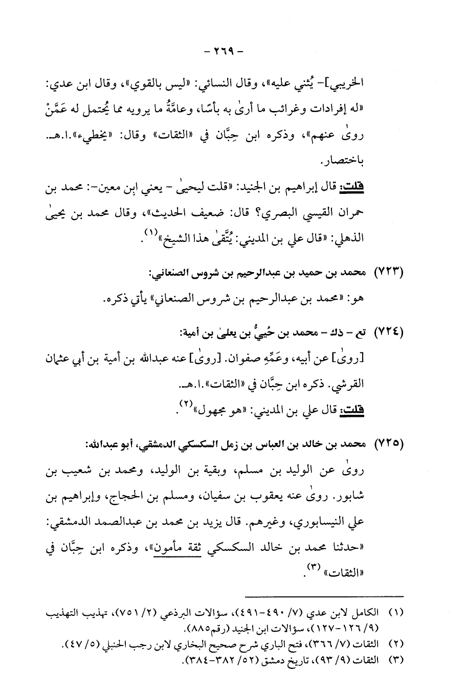 (¬1) الكامل لابن عدي (7/ 490 - 491)، سؤالات البرذعى (2/ 751)، تهذيب التهذيب (9/ 126 - 127)، سؤالات ابن الجنيد (رقم 885).