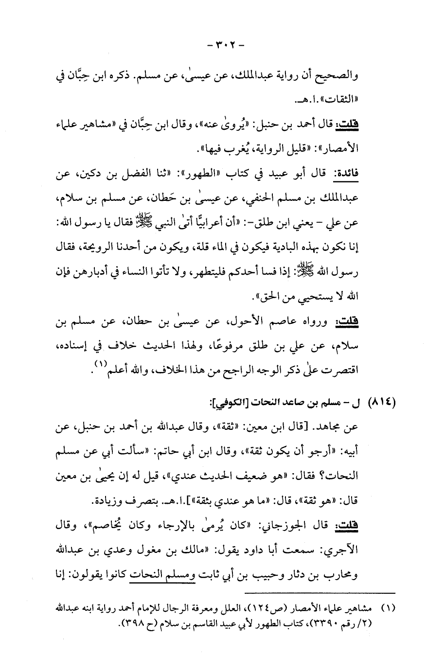 (¬1) مشاهير علماء الأمصار (ص 124)، العلل ومعرفة الرجال للإمام أحمد رواية ابنه عبد الله (2/ رقم 3390)، كتاب الطهور لأبي عبيد القاسم بن سلام (ح 398).