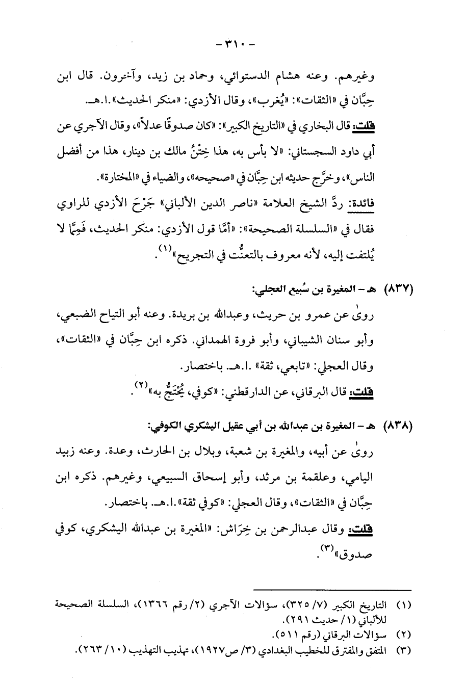 (¬1) التاريخ الكبير (7/ 325)، سؤالات الآجري (2/ رقم 1366)، السلسلة الصحيحة للألباني (1/ حديث 291).