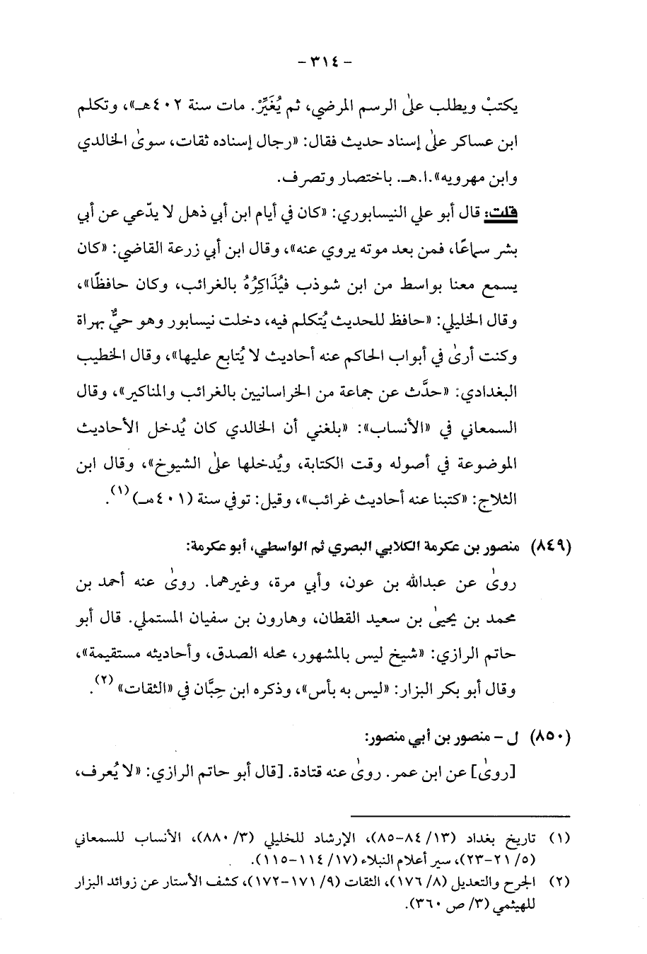 (¬1) تاريخ بغداد (13/ 84 - 85)، الإرشاد للخليلي (3/ 880)، الأنساب للسمعاني (5/ 21 - 23)، سير أعلام النبلاء (17/ 114 - 115).