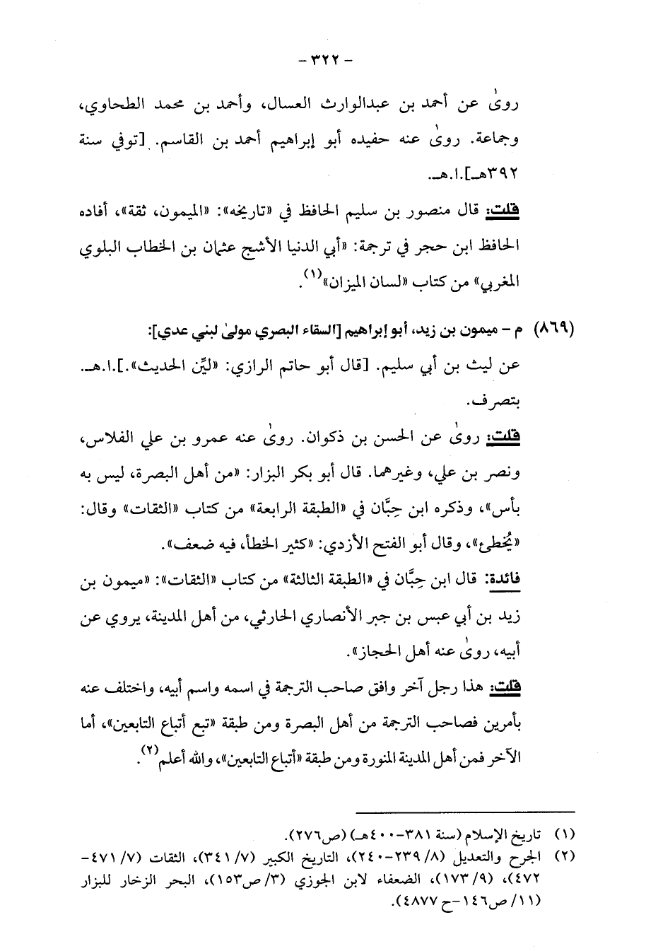 قلت: قال منصور بن سليم الحافظ في "تاريخه": "الميمون، ثقة"، أفاده الحافظ ابن حجر في ترجمة: "أبي الدنيا الأشج عثمان بن الخطاب البلوي المغربي" من كتاب "لسان الميزان" (¬1).