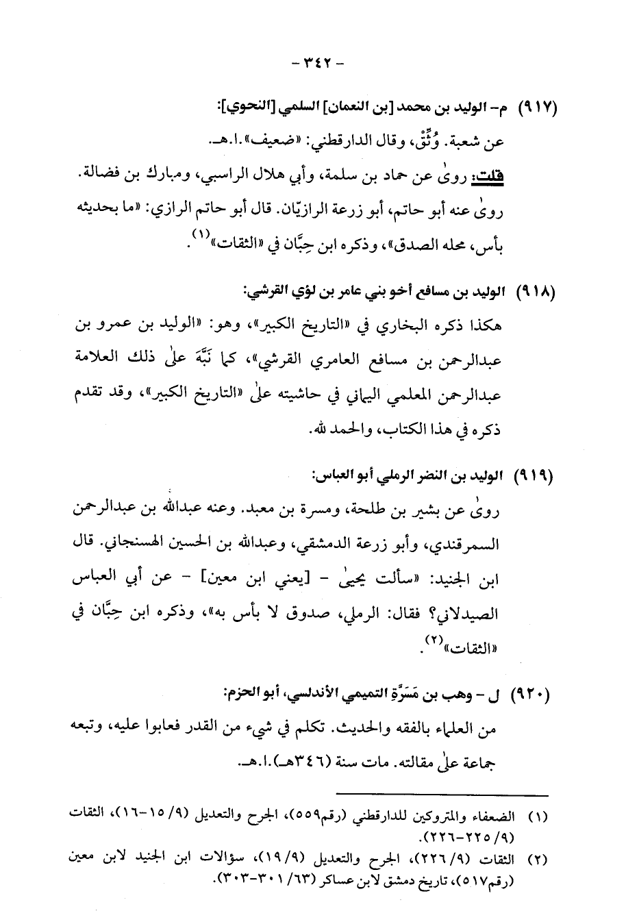 (¬2) الثقات (9/ 226)، الجرح والتعديل (9/ 19)، سؤالات ابن الجنيد لابن معين (رقم 517)، تاريخ دمشق لابن عساكر (63/ 301 - 303).