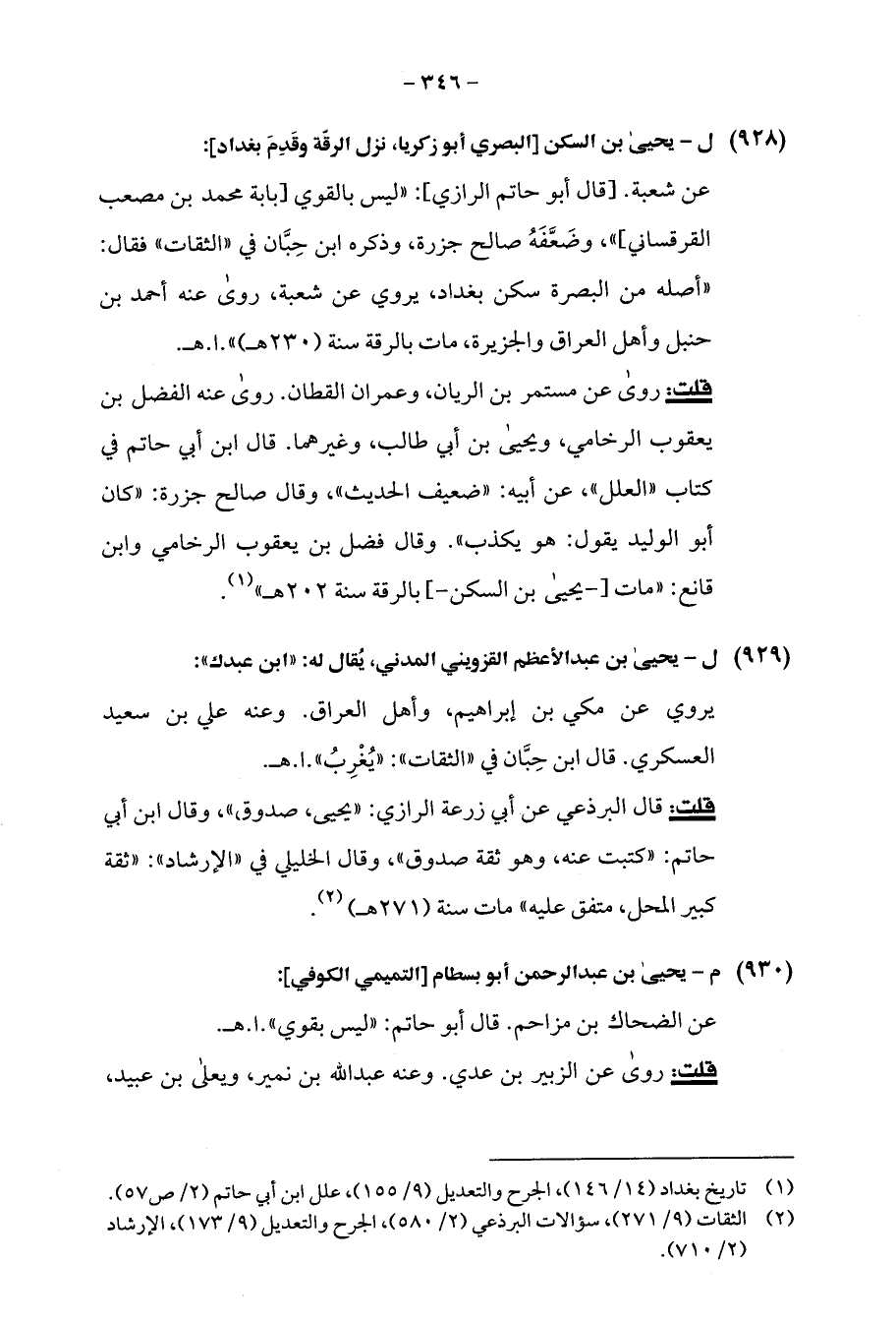 (¬2) الثقات (9/ 271)، سؤالات البرذعي (2/ 580)، الجرح والتعديل (9/ 173)، الإرشاد (2/ 710).