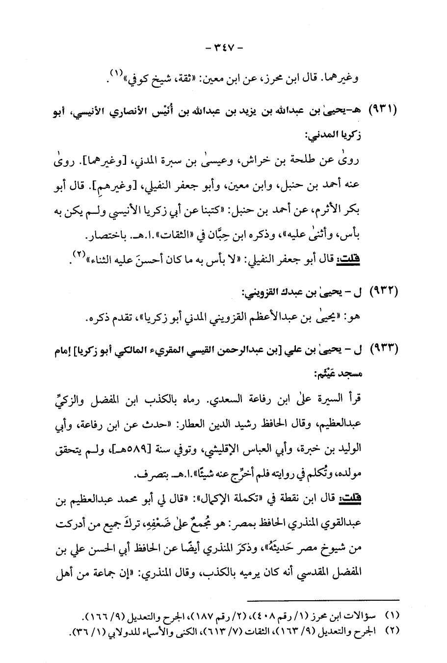 (¬1) سؤالات ابن محرز (1/ رقم 408)، (2/ رقم 187)، الجرح والتعديل (9/ 166).