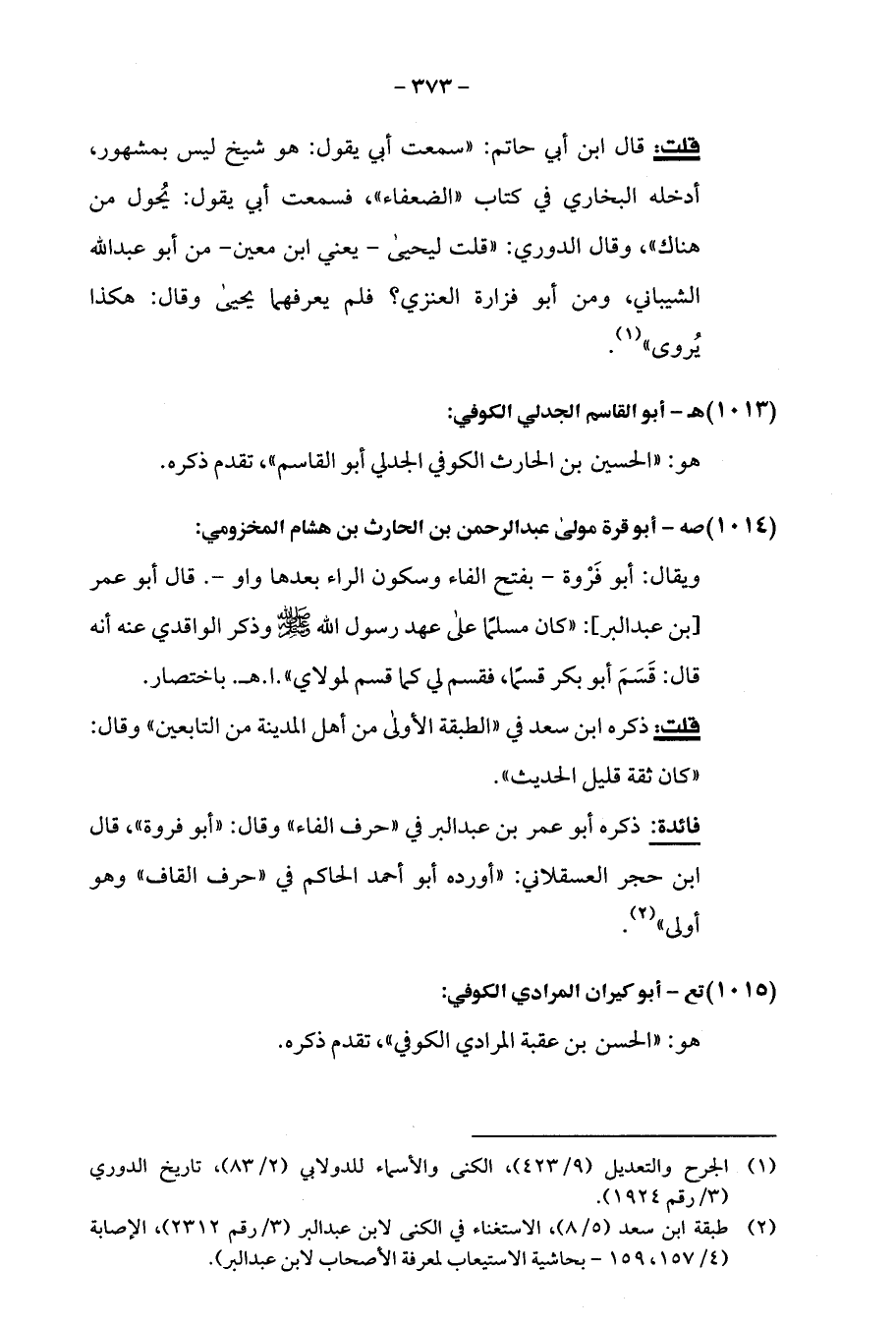 (¬2) طبقة ابن سعد (5/ 8)، الاستغناء في الكنى لابن عبد البر (3/ رقم 2312)، الإصابة (4/ 157، 159 - بحاشية الاستيعاب لمعرفة الأصحاب لابن عبد البر).