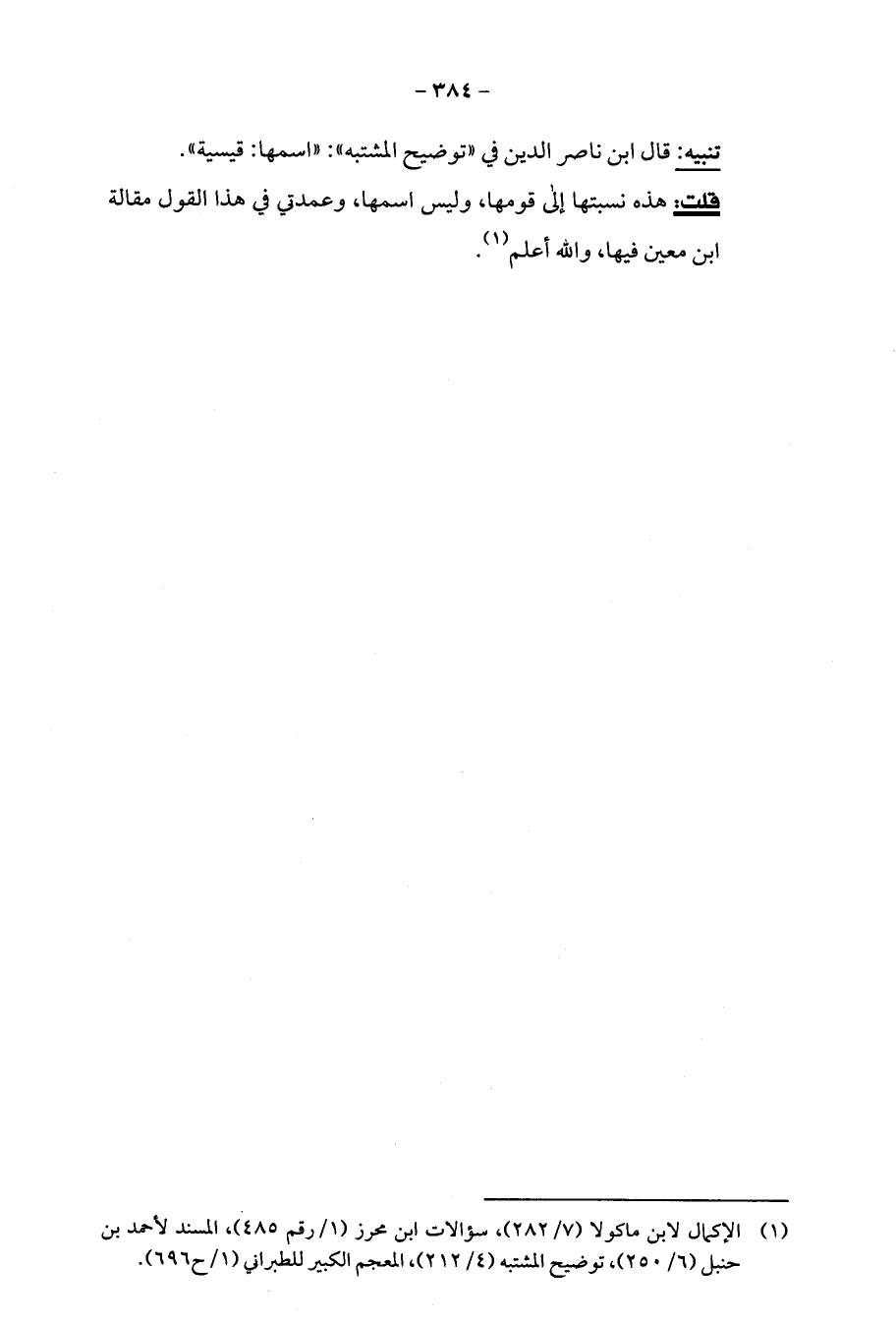 تنبيه: قال ابن ناصر الدين في "توضيح المشتبه": "اسمها: قيسية".