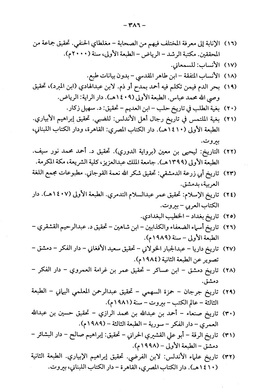 (23) تاريخ أبي زرعة الدمشقي: تحقيق شكر الله نعمة القوجاني. مطبوعات مجمع اللغة العربية، بدمشق.