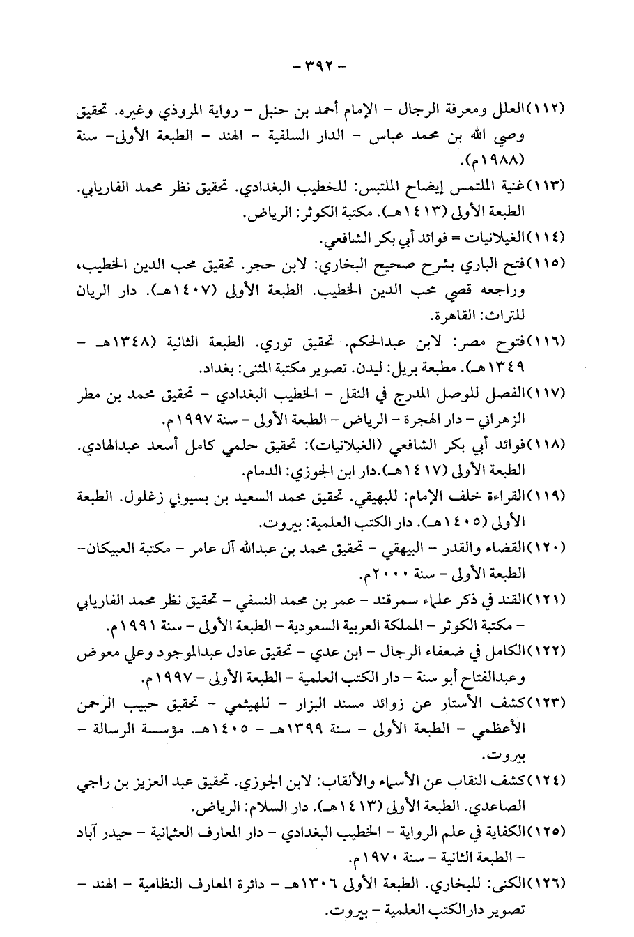 (113) غنية الملتمس إيضاح الملتبس: للخطيب البغدادي. تحقيق نظر محمد الفاريابي. الطبعة الأولى (1413 هـ). مكتبة الكوثر: الرياض.