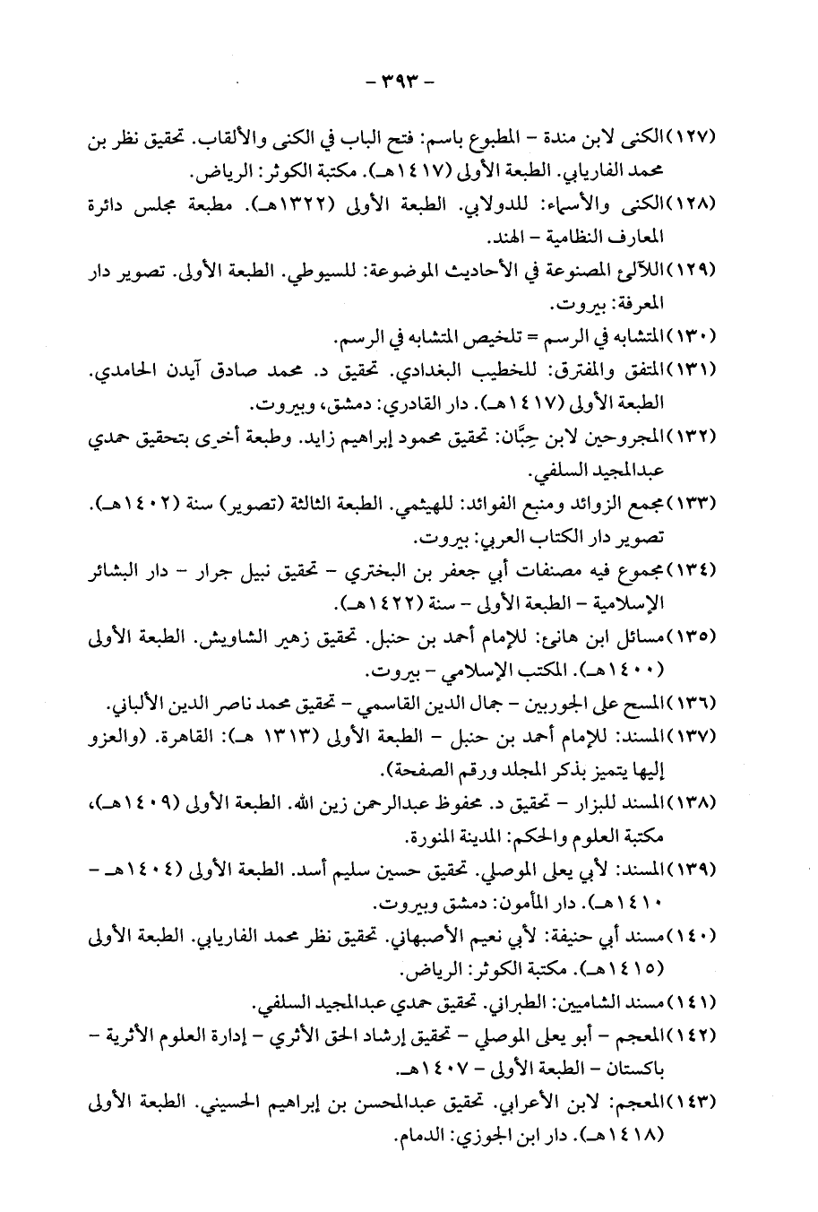 (140) مسند أبي حنيفة: لأبي نعيم الأصبهاني. تحقيق نظر محمد الفاريابي. الطبعة الأولى (1415 هـ). مكتبة الكوثر: الرياض.