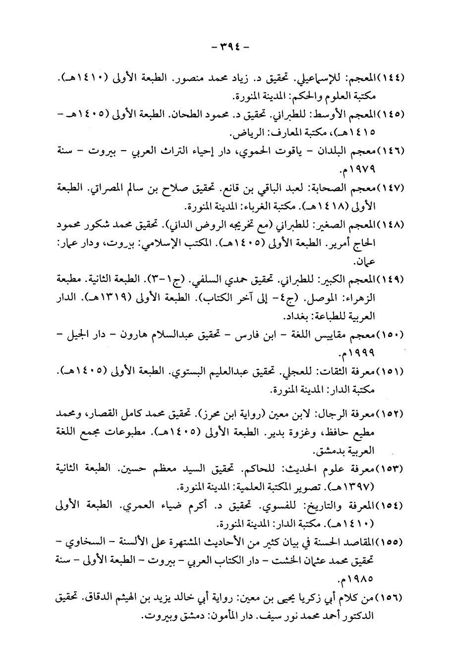 (144) المعجم: للإسماعيلي. تحقيق د. زياد محمد منصور. الطبعة الأولى (1410 هـ). مكتبة العلوم والحكم: المدينة المنورة.