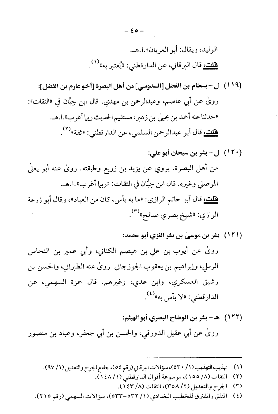 (¬1) تهذيب التهذيب (1/ 430)، سؤالات البرقاني (رقم 54)، جامع الجرح والتعديل (1/ 97).