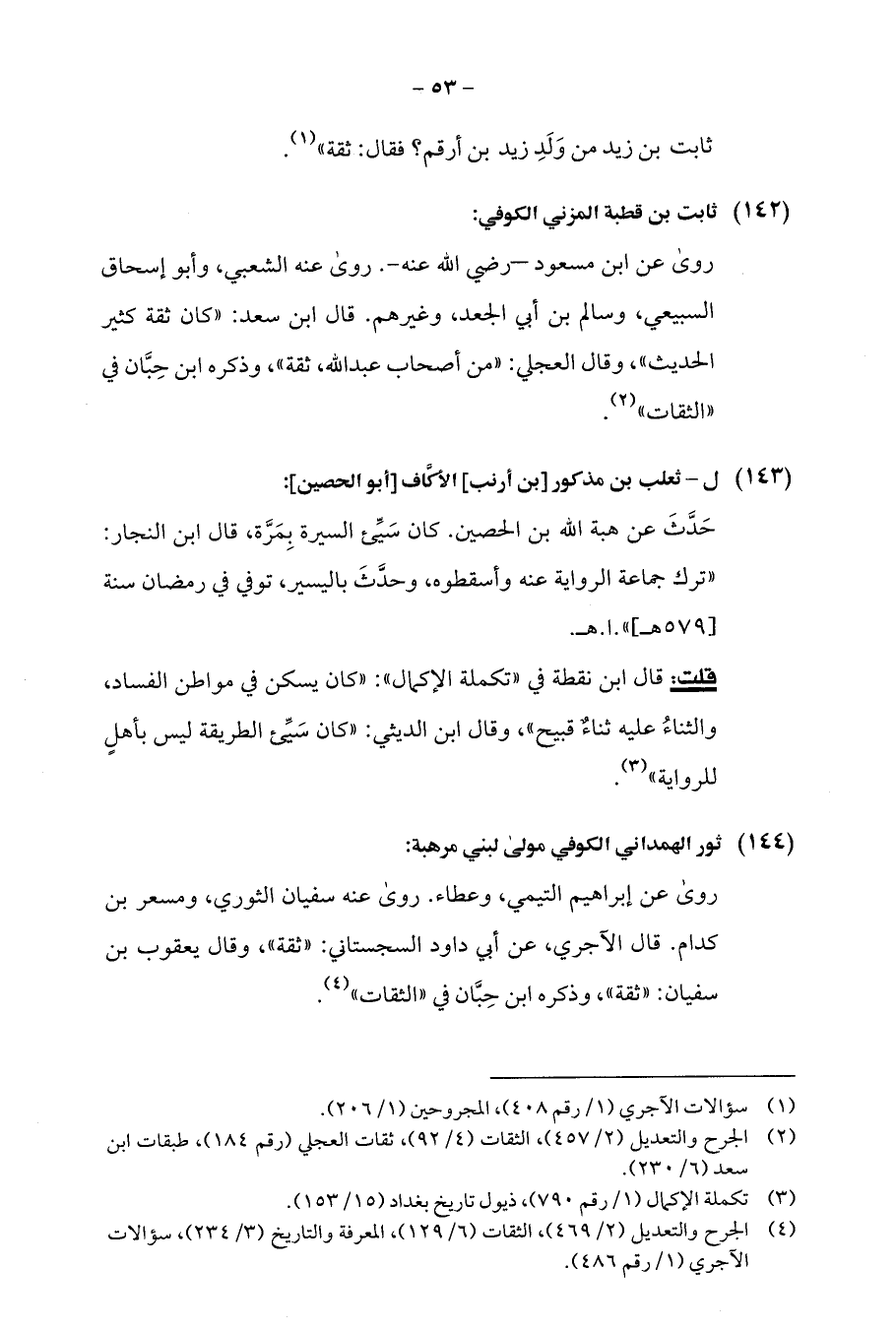 (144) ثور الهمداني الكوفي مولى لبني مرهبة: