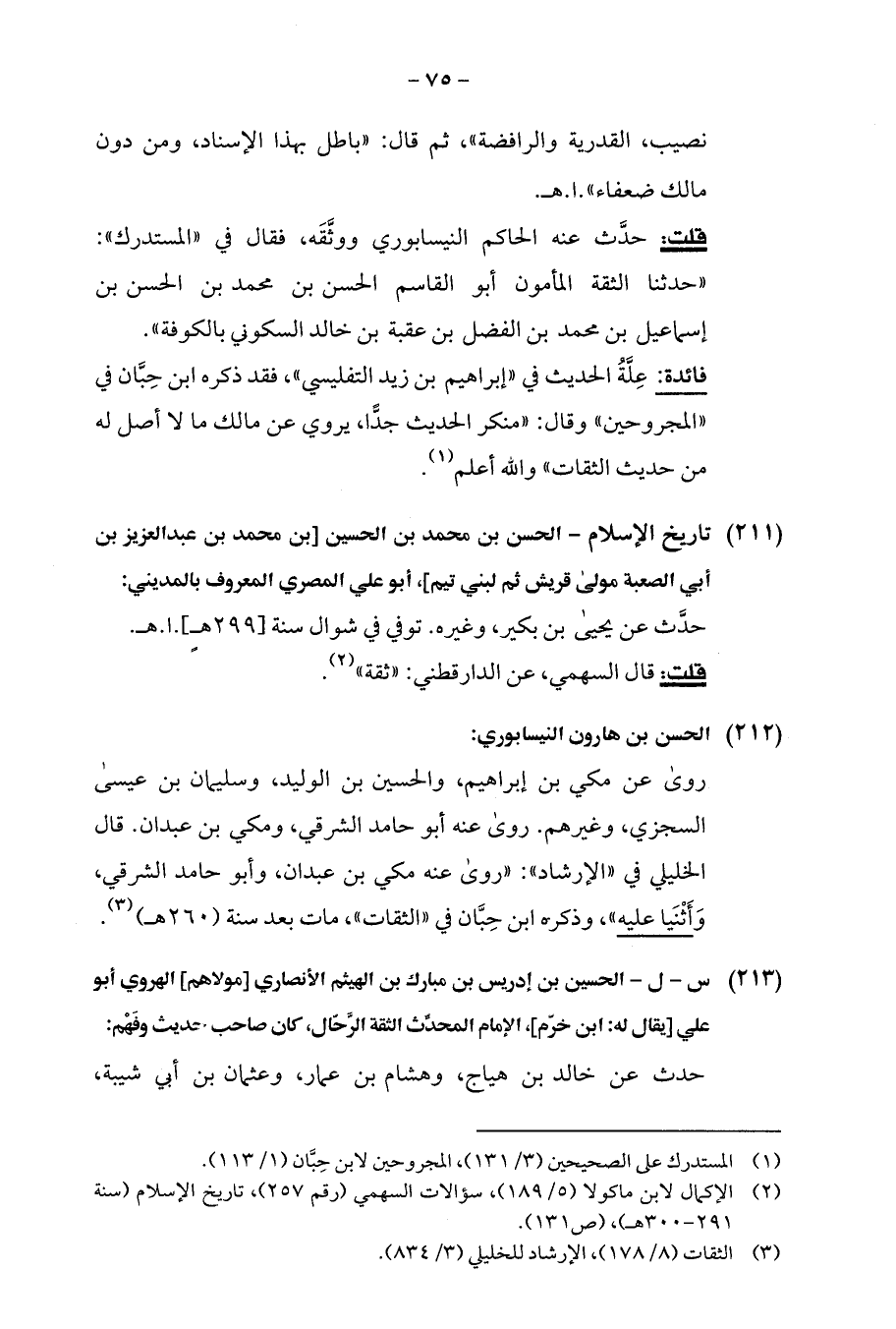 (313) س- ل- الحسين بن إدريس بن مبارك بن الهيثم الأنصاري [مولاهم] الهروي أبو علي [يقال له: ابن خرّم]، الإمام المحدِّث الثقة الرَّحال، كان صاحب حديث وفَهْم: