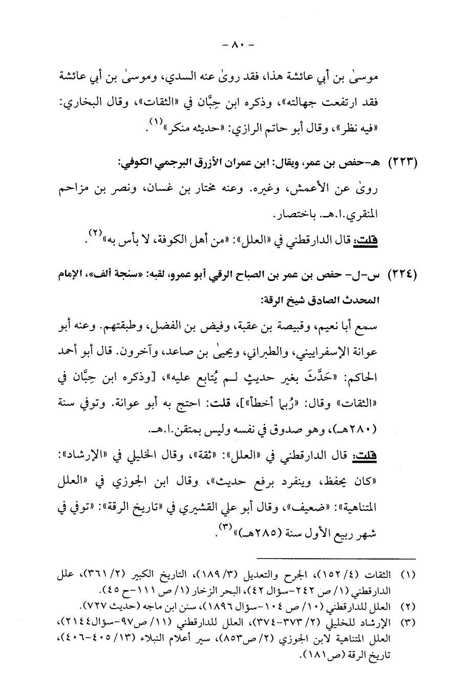 (¬3) الإرشاد للخليلى (2/ 373 - 374)، العلل للدارقطني (11/ ص 97 - سؤال 2144)، العلل المتناهية لابن الجوزي (2/ ص 853)، سير أعلام النبلاء (13/ 405 - 406)، تاريخ الرقة (ص 181).