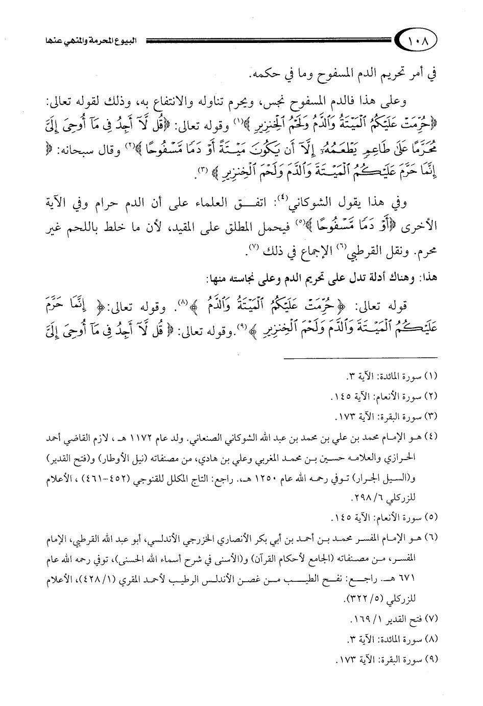 قوله تعالى: {حُرِّمَتْ عَلَيْكُمُ الْمَيْتَةُ وَالدَّمُ} 8. وقوله تعالى: {إِنَّمَا حَرَّمَ عَلَيْكُمُ الْمَيْتَةَ وَالدَّمَ وَلَحْمَ الْخِنْزِيرِ} 9.وقوله تعالى: {قُلْ لا أَجِدُ فِي مَا أُوحِيَ إِلَيَّ