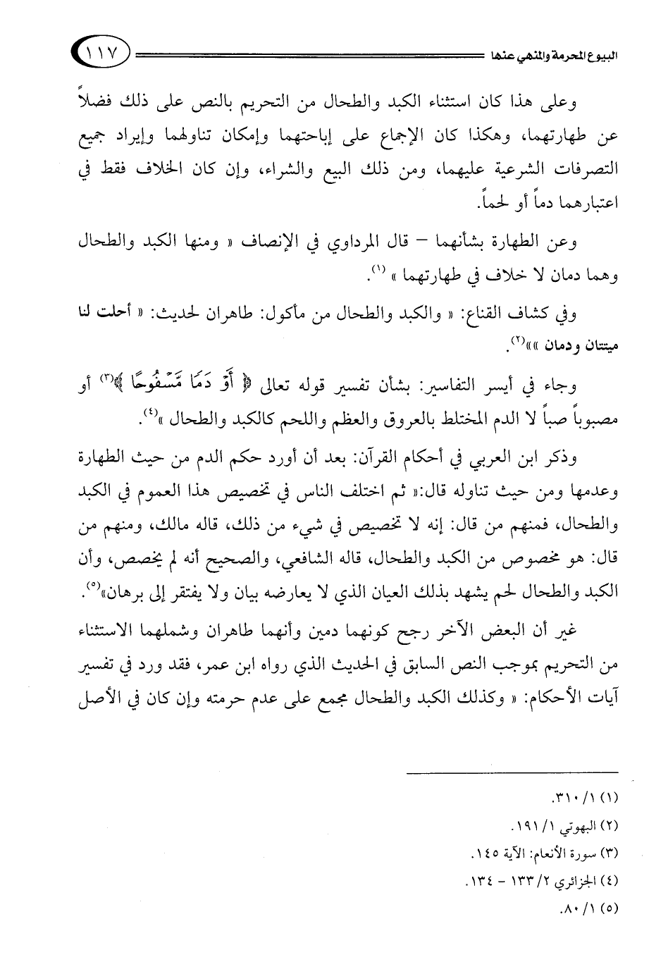 وعلى هذا كان استثناء الكبد والطحال من التحريم بالنص على ذلك فضلاً عن طهارتهما، وهكذا كان الإجماع على إباحتهما وإمكان تناولهما وإيراد جميع التصرفات الشرعية عليهما، ومن ذلك البيع والشراء، وإن كان الخلاف فقط في اعتبارهما دماً أو لحماً.