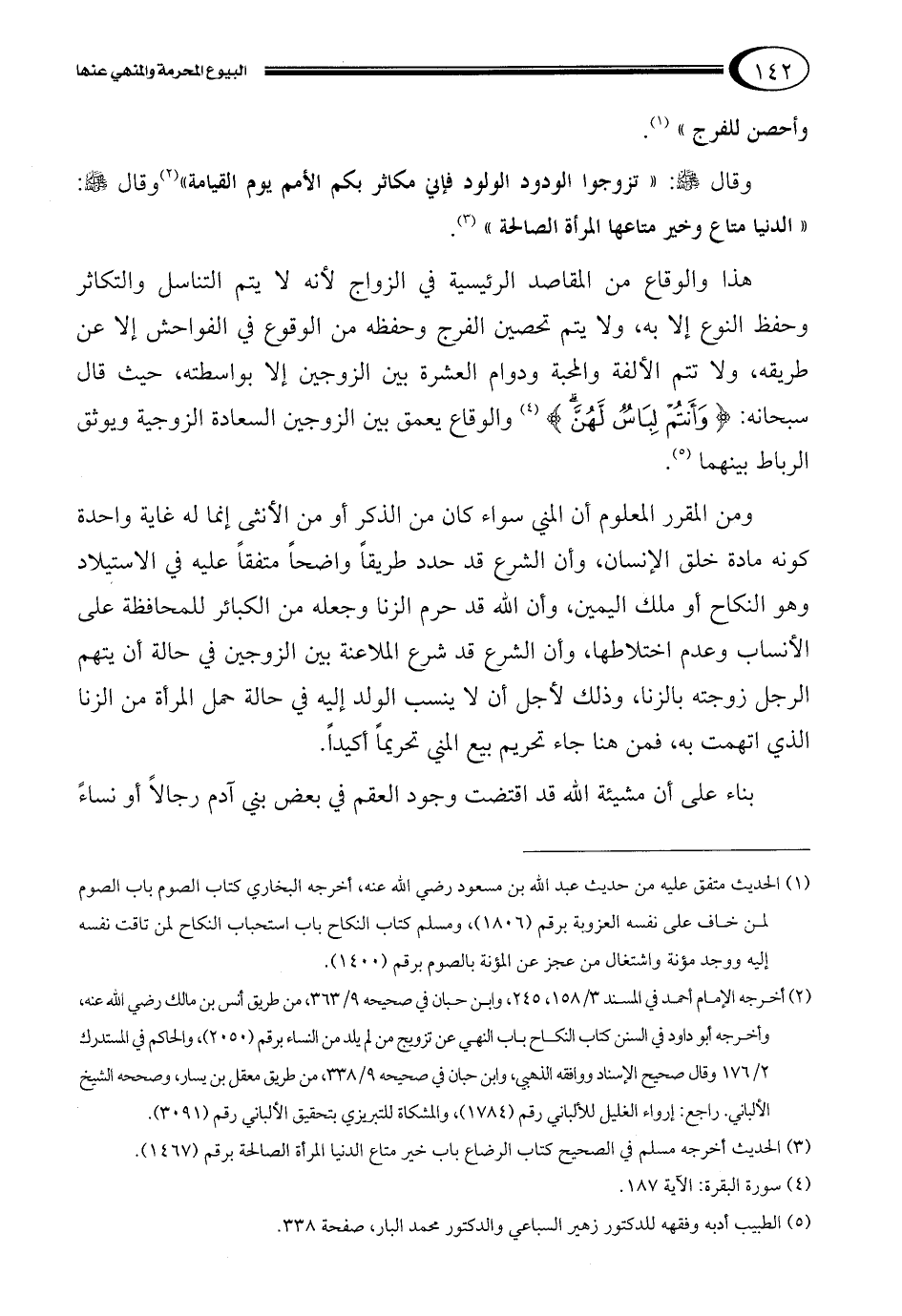 وقال صلى الله عليه وسلم: "تزوجوا الودود الولود فإني مكاثر بكم الأمم يوم القيامة" 2وقال صلى الله عليه وسلم: "الدنيا متاع وخير متاعها المرأة الصالحة" 3.