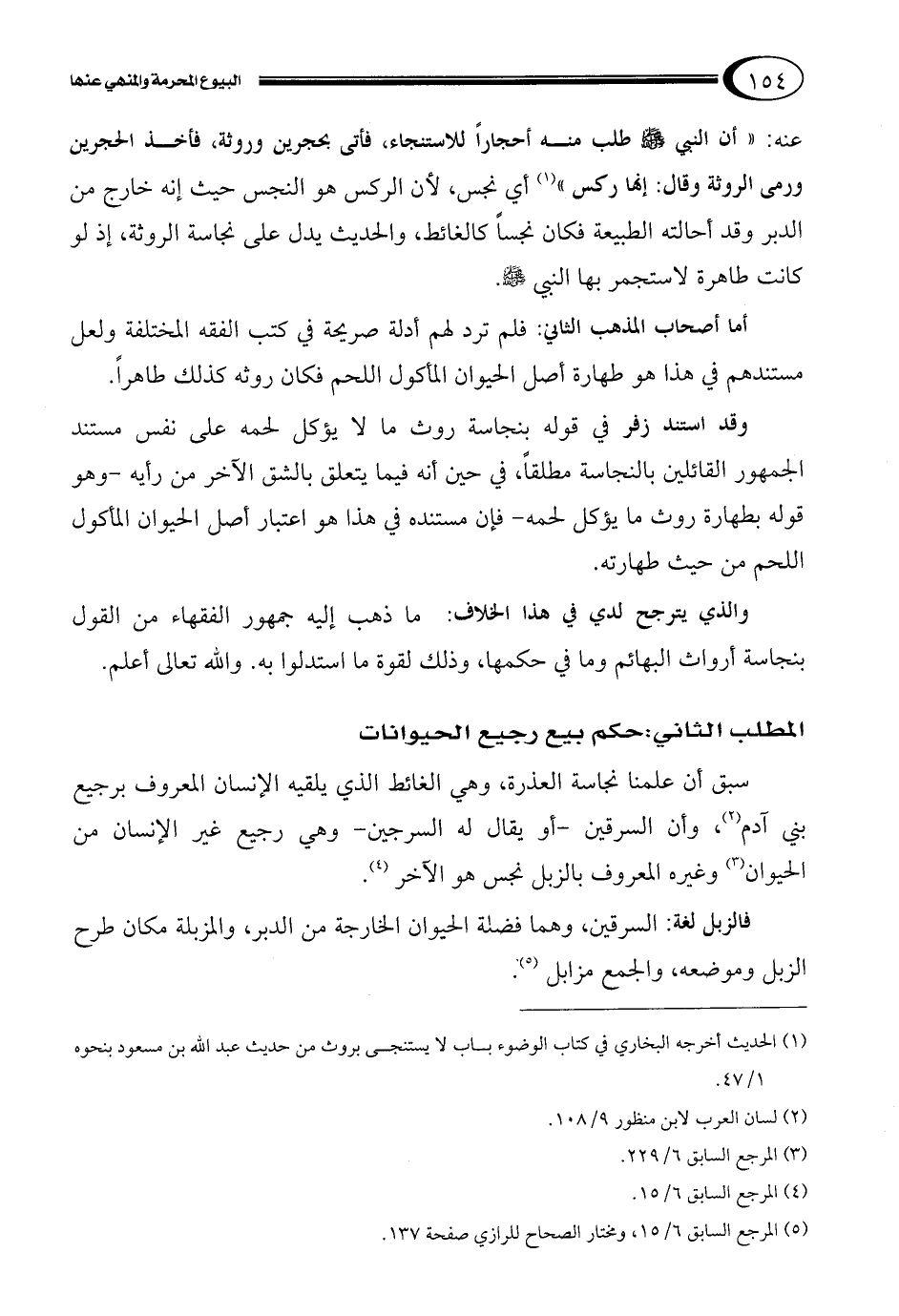 المطلب الثاني: حكم بيع رجيع الحيوانات