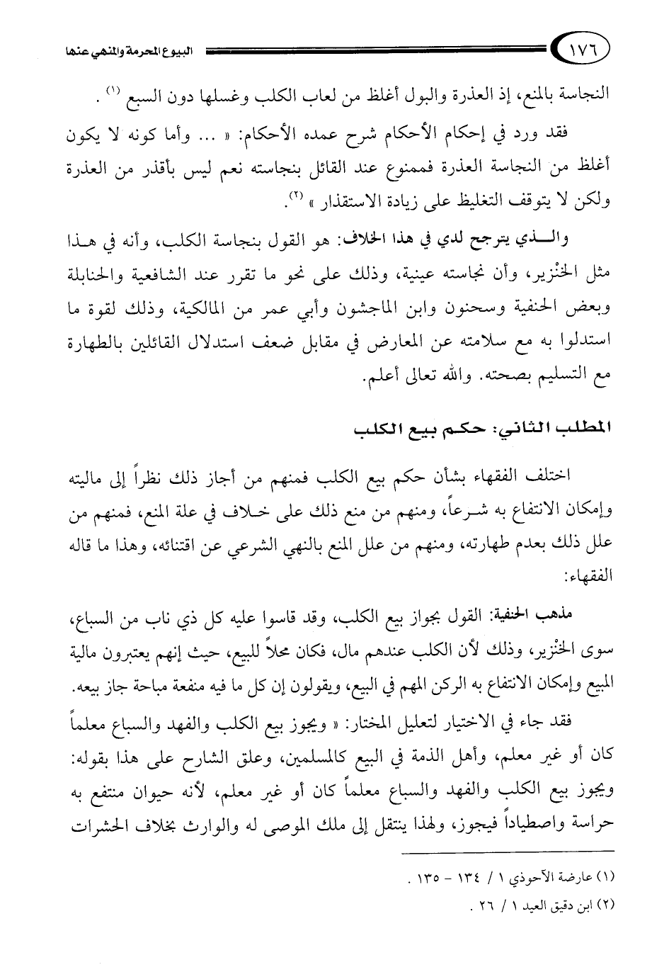 اختلف الفقهاء بشأن حكم بيع الكلب فمنهم من أجاز ذلك نظراً إلى ماليته وإمكان الانتفاع به شرعاً، ومنهم من منع ذلك على خلاف في علة المنع، فمنهم من علل ذلك بعدم طهارته، ومنهم من علل المنع بالنهي الشرعي عن اقتنائه، وهذا ما قاله الفقهاء: