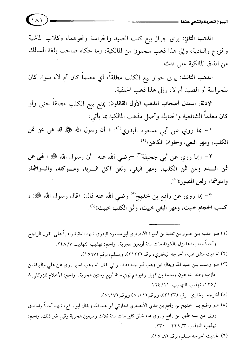 3- بما روى عن رافع بن خديج5 رضي الله عنه قال: "قال رسول الله صلى الله عليه وسلم: "كسب الحجام خبيث، ومهر البغي خبيث، وثمن الكلب خبيث" 6.