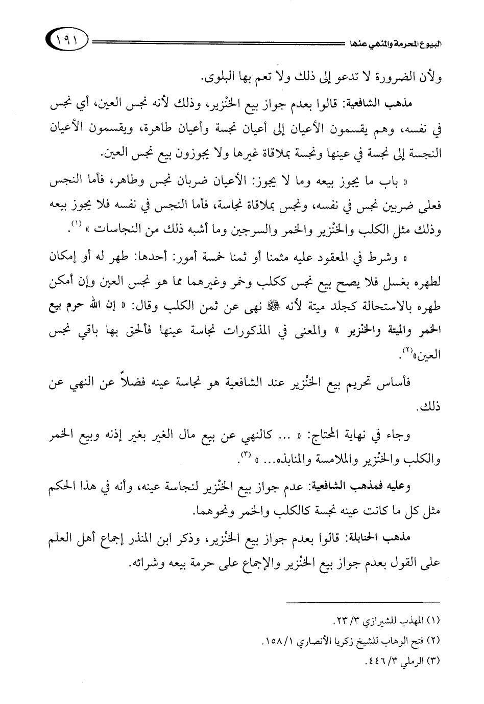 فأساس تحريم بيع الخنْزير عند الشافعية هو نجاسة عينه فضلاً عن النهي عن ذلك.