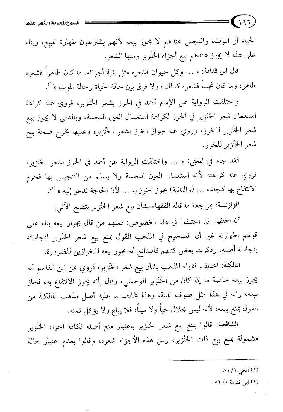 الموازنة: بمراجعة ما قاله الفقهاء بشأن بيع شعر الخنْزير يتضح الآتي: