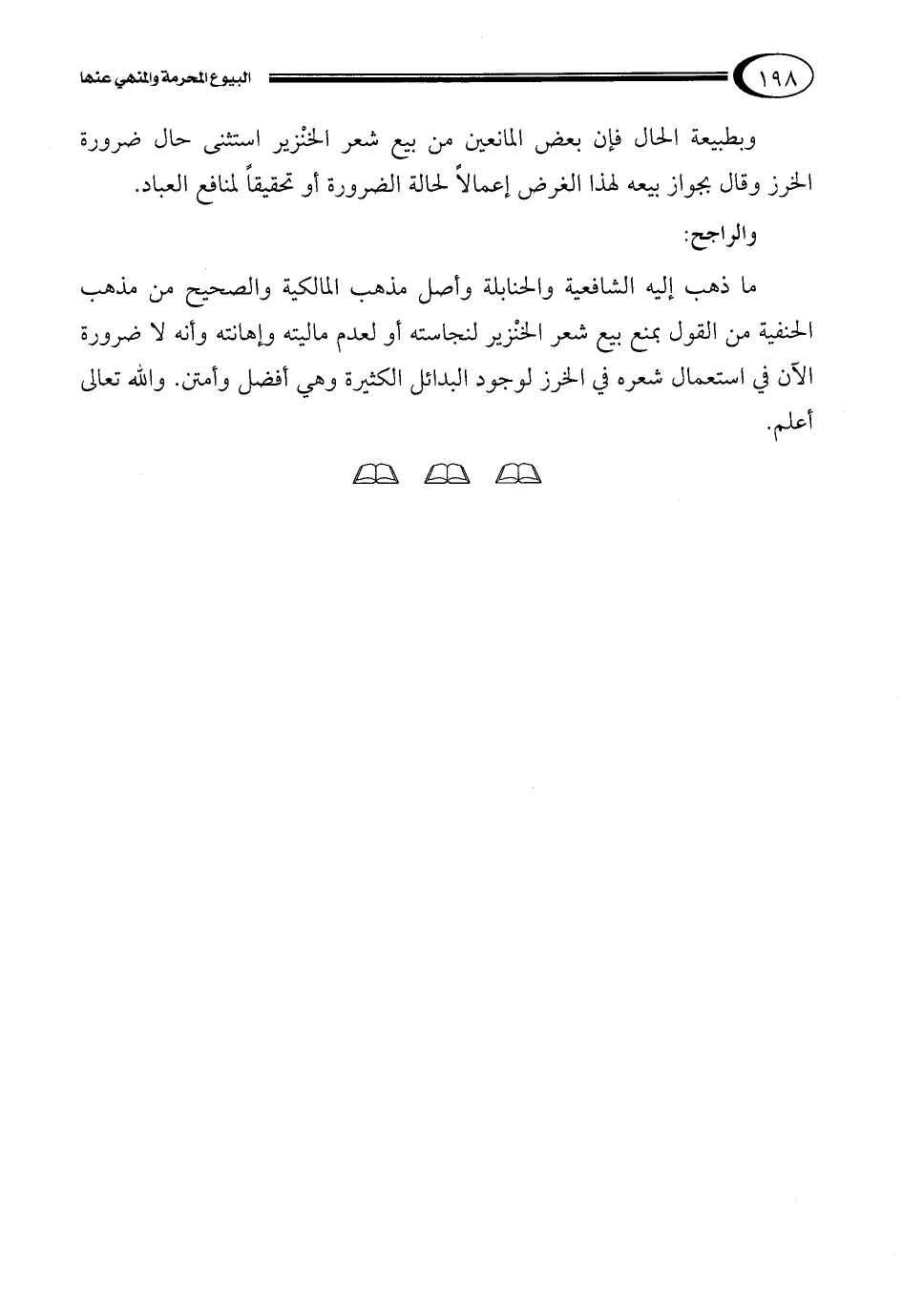 وبطبيعة الحال فإن بعض المانعين من بيع شعر الخنْزير استثنى حال ضرورة الخرز وقال بجواز بيعه لهذا الغرض إعمالاً لحالة الضرورة أو تحقيقاً لمنافع العباد.