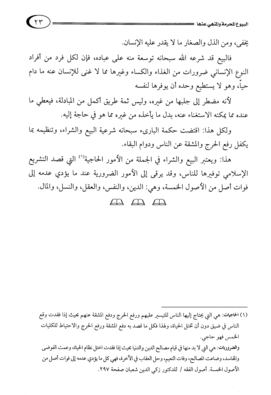 هذا: ويعتبر البيع والشراء في الجملة من الأمور الحاجية1 التي قصد التشريع الإسلامي توفيرها للناس، وقد يرقى إلى الأمور الضرورية عند ما يؤدي عدمه إلى فوات أصل من الأصول الخمسة، وهي: الدين، والنفس، والعقل، والنسل، والمال.