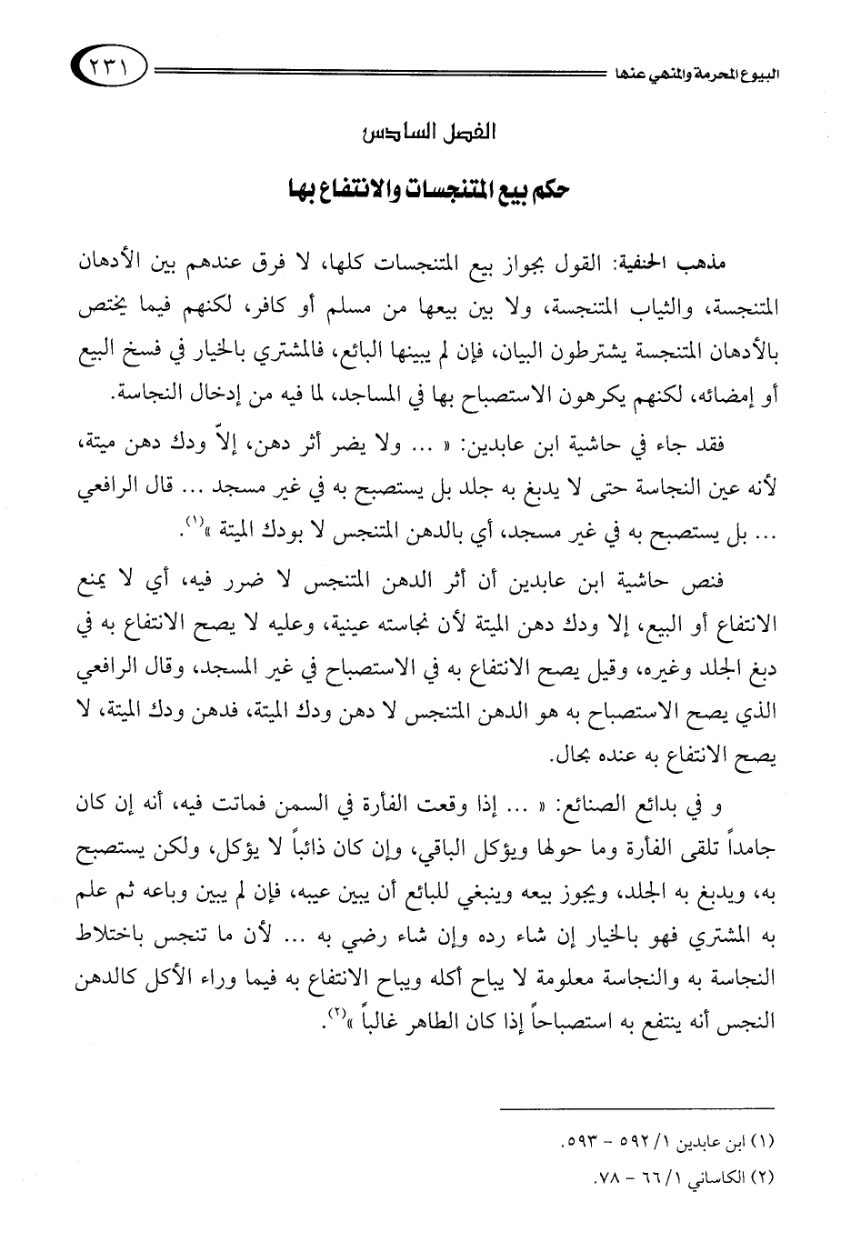 الفصل السادس: حكم بيع المتنجسات والانتفاع بها