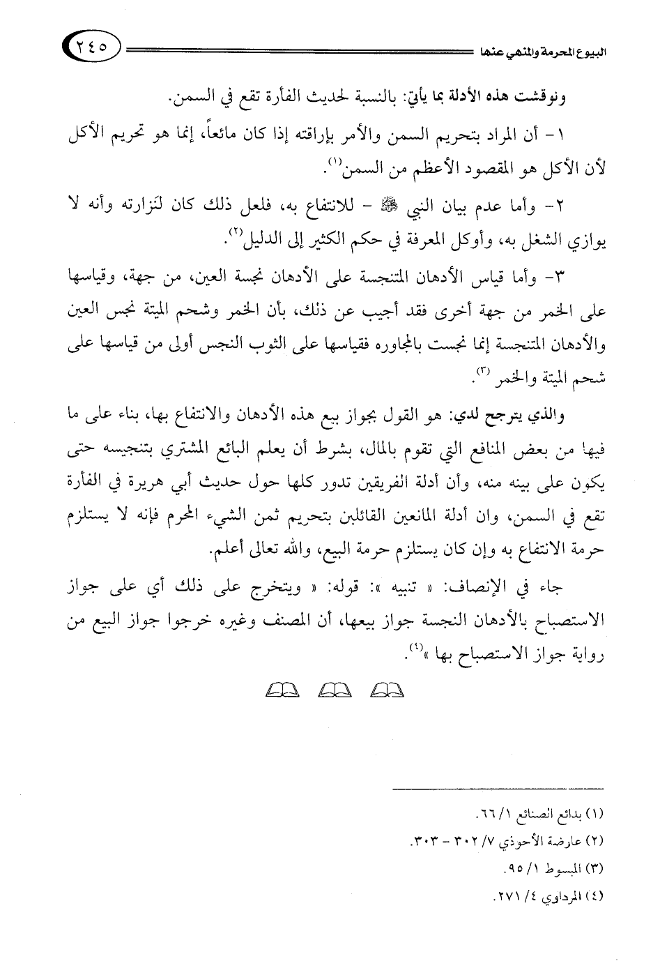 3- وأما قياس الأدهان المتنجسة على الأدهان نجسة العين، من جهة، وقياسها على الخمر من جهة أخرى فقد أجيب عن ذلك، بأن الخمر وشحم الميتة نجس العين والأدهان المتنجسة إنما نجست بالمجاوره فقياسها على الثوب النجس أولى من قياسها على شحم الميتة والخمر3.
