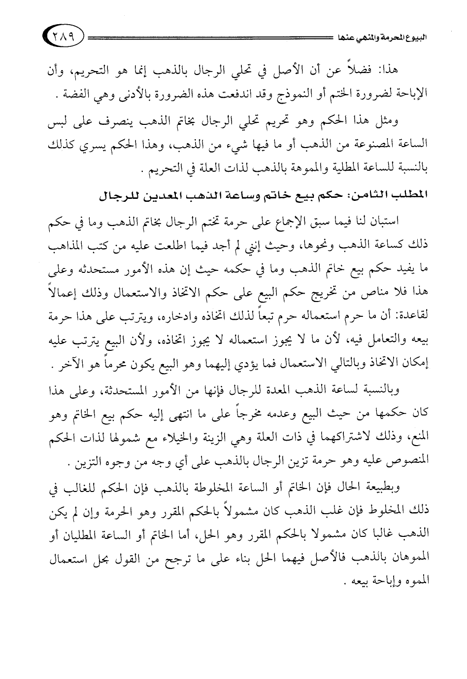 المطلب الثامن: حكم بيع خاتم وساعة الذهب المعدين للرجال
