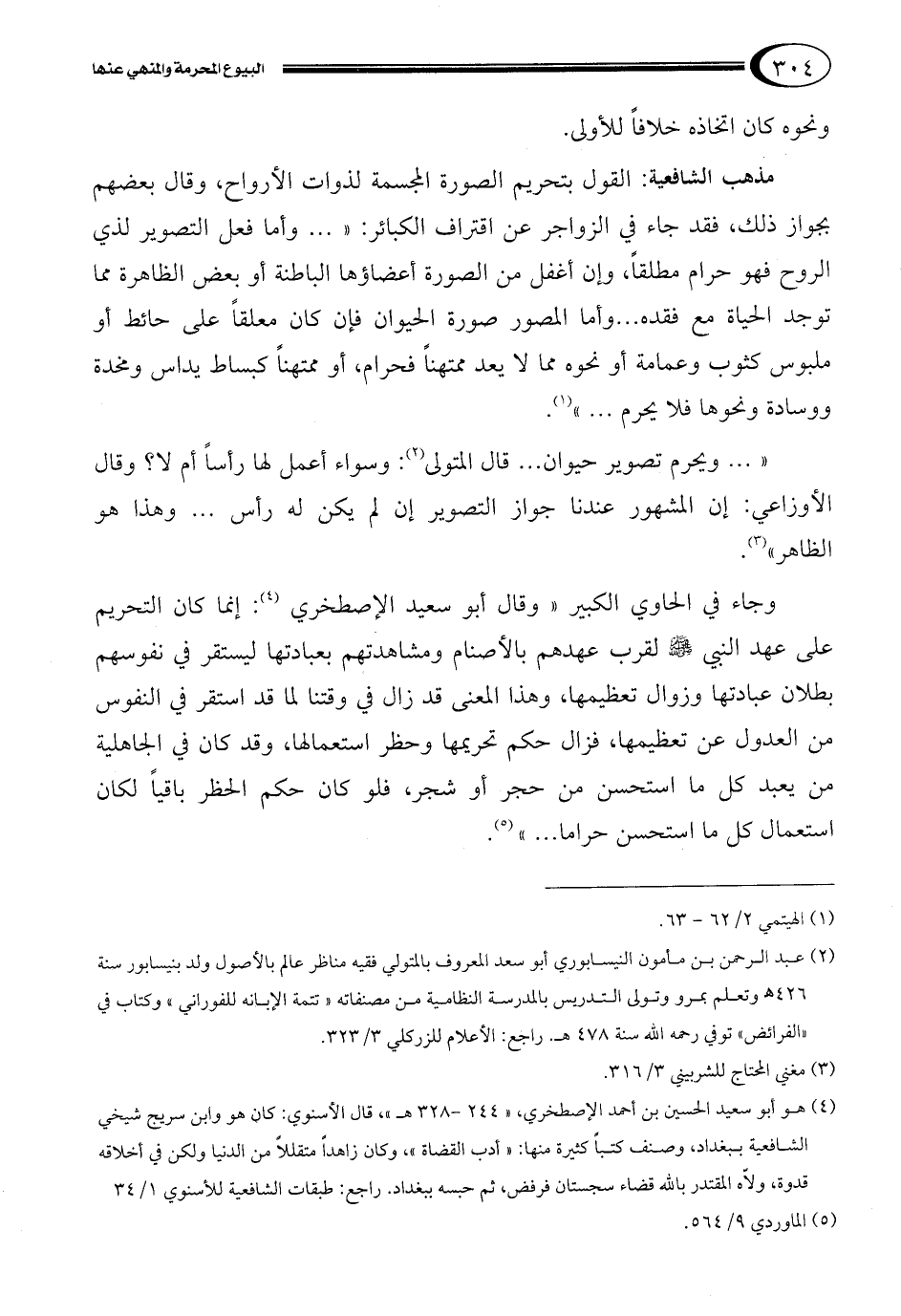 وجاء في الحاوي الكبير "وقال أبو سعيد الإصطخري 4: إنما كان التحريم على عهد النبي صلى الله عليه وسلم لقرب عهدهم بالأصنام ومشاهدتهم بعبادتها ليستقر في نفوسهم بطلان عبادتها وزوال تعظيمها، وهذا المعنى قد زال في وقتنا لما قد استقر في النفوس من العدول عن تعظيمها، فزال حكم تحريمها وحظر استعمالها، وقد كان في الجاهلية من يعبد كل ما استحسن من حجر أو شجر، فلو كان حكم الحظر باقياً لكان استعمال كل ما استحسن حراما ... " 5.