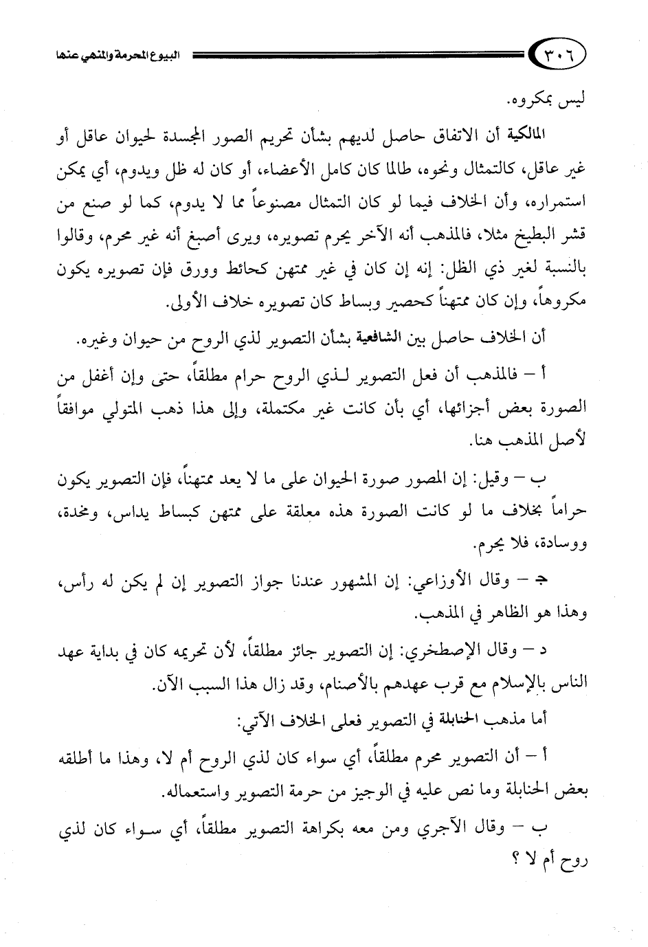 ب – وقال الآجري ومن معه بكراهة التصوير مطلقاً، أي سواء كان لذي روح أم لا؟