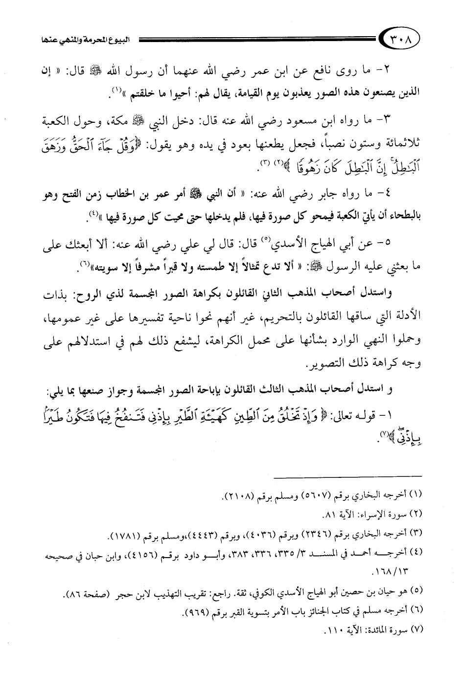 4- ما رواه جابر رضي الله عنه: "أن النبي صلى الله عليه وسلم أمر عمر بن الخطاب زمن الفتح وهو بالبطحاء أن يأتي الكعبة فيمحو كل صورة فيها، فلم يدخلها حتى محيت كل صورة فيها"4.