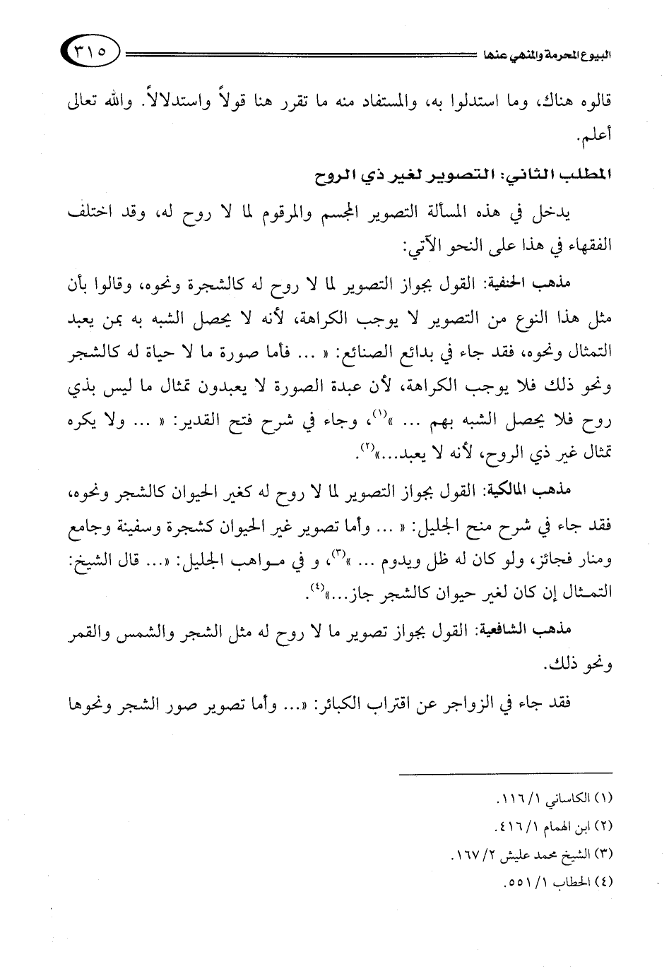 مذهب الشافعية: القول بجواز تصوير ما لا روح له مثل الشجر والشمس والقمر ونحو ذلك.