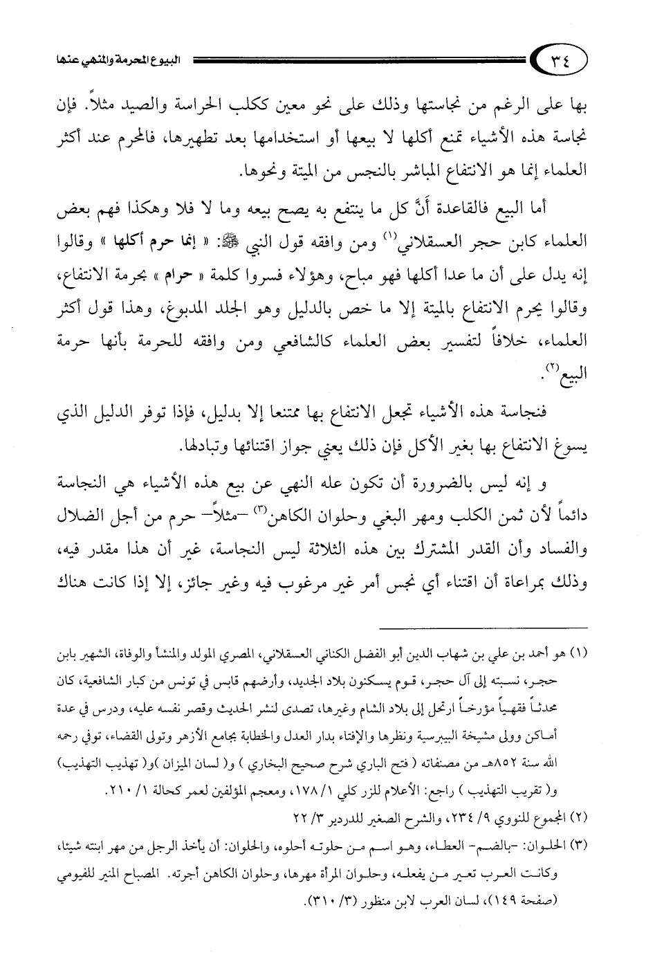 وإنه ليس بالضرورة أن تكون عله النهي عن بيع هذه الأشياء هي النجاسة دائماً لأن ثمن الكلب ومهر البغي وحلوان الكاهن3 –مثلاً– حرم من أجل الضلال والفساد وأن القدر المشترك بين هذه الثلاثة ليس النجاسة، غير أن هذا مقدر فيه، وذلك بمراعاة أن اقتناء أي نجس أمر غير مرغوب فيه وغير جائز، إلا إذا كانت هناك