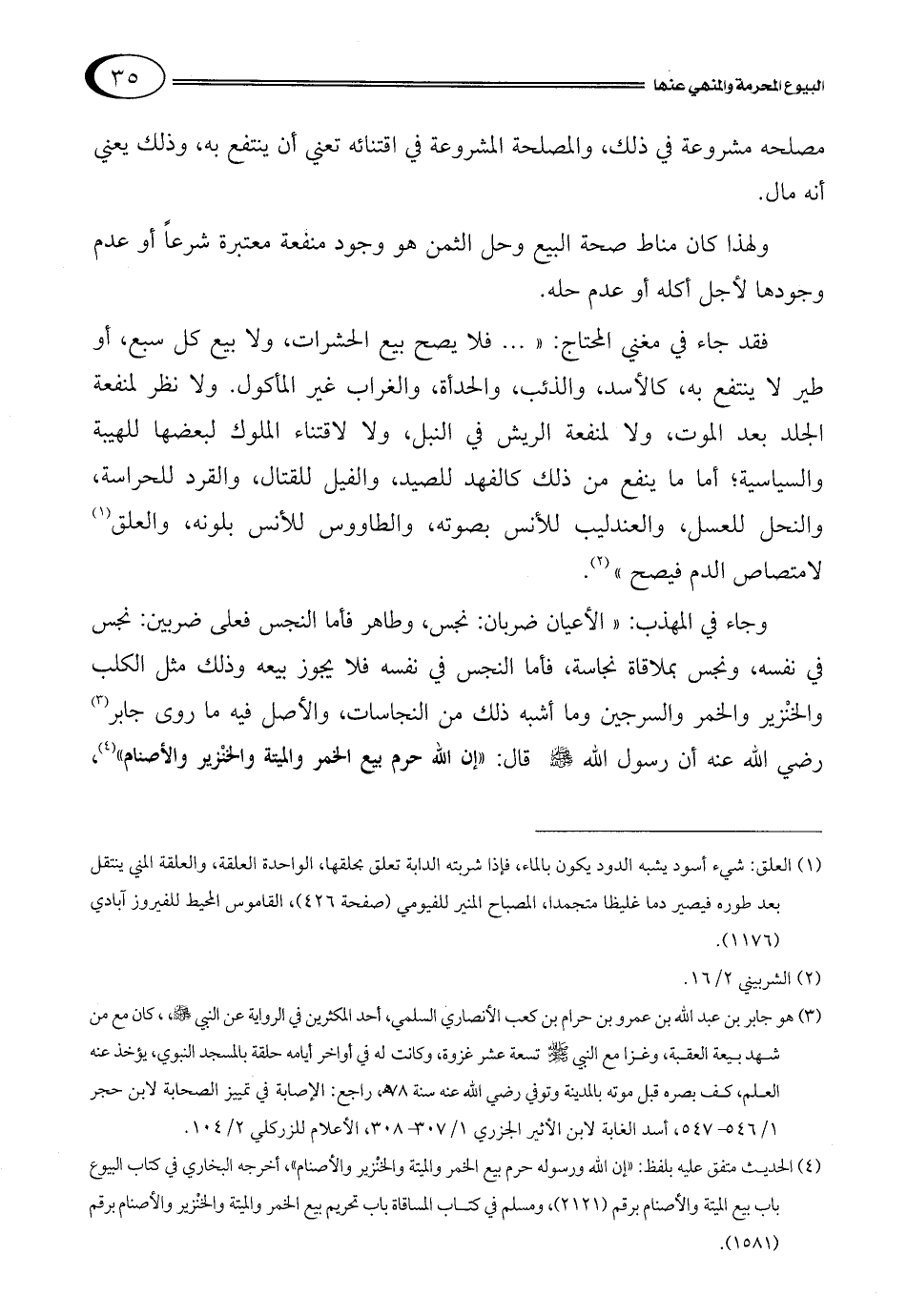 4 الحديث متفق عليه بلفظ: "إن الله ورسوله حرم بيع الخمر والميتة والخنْزير والأصنام"، أخرجه البخاري في كتاب البيوع باب بيع الميتة والأصنام برقم 2121، ومسلم في كتاب المساقاة باب تحريم بيع الخمر والميتة والخنْزير والأصنام برقم 1581.
