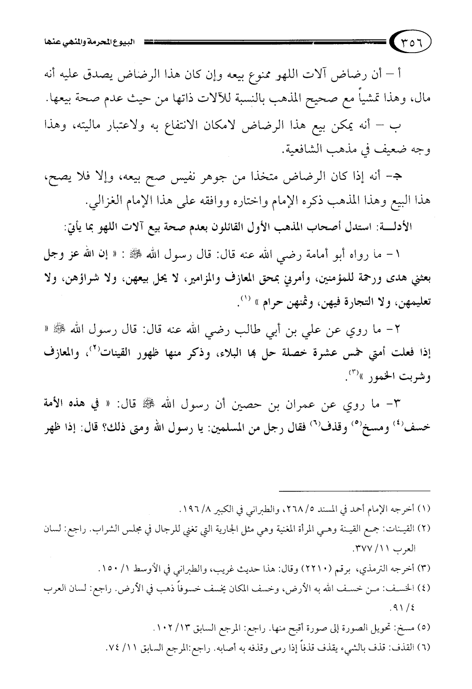 1- ما رواه أبو أمامة رضي الله عنه قال: قال رسول الله صلى الله عليه وسلم: "إن الله عز وجل بعثني هدى ورحمة للمؤمنين، وأمرني بمحق المعازف والمزامير، لا يحل بيعهن، ولا شراؤهن، ولا تعليمهن، ولا التجارة فيهن، وثمنهن حرام" 1.