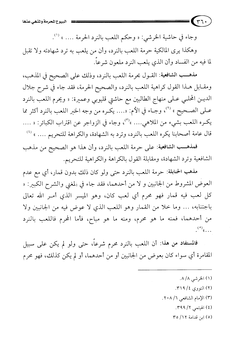 وجاء في حاشية الخرشي: "وحكم اللعب بالنرد الحرمة...."1.
