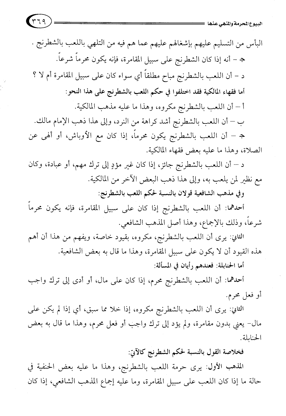 ج - أنه إذا كان الشطرنج على سبيل المقامرة، فإنه يكون محرماً شرعاً.