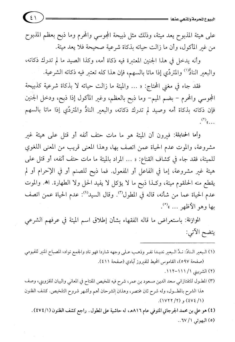 الموازنة: باستعراض ما قاله الفقهاء بشأن إطلاق اسم الميتة في عرفهم الشرعي يتضح الآتي: