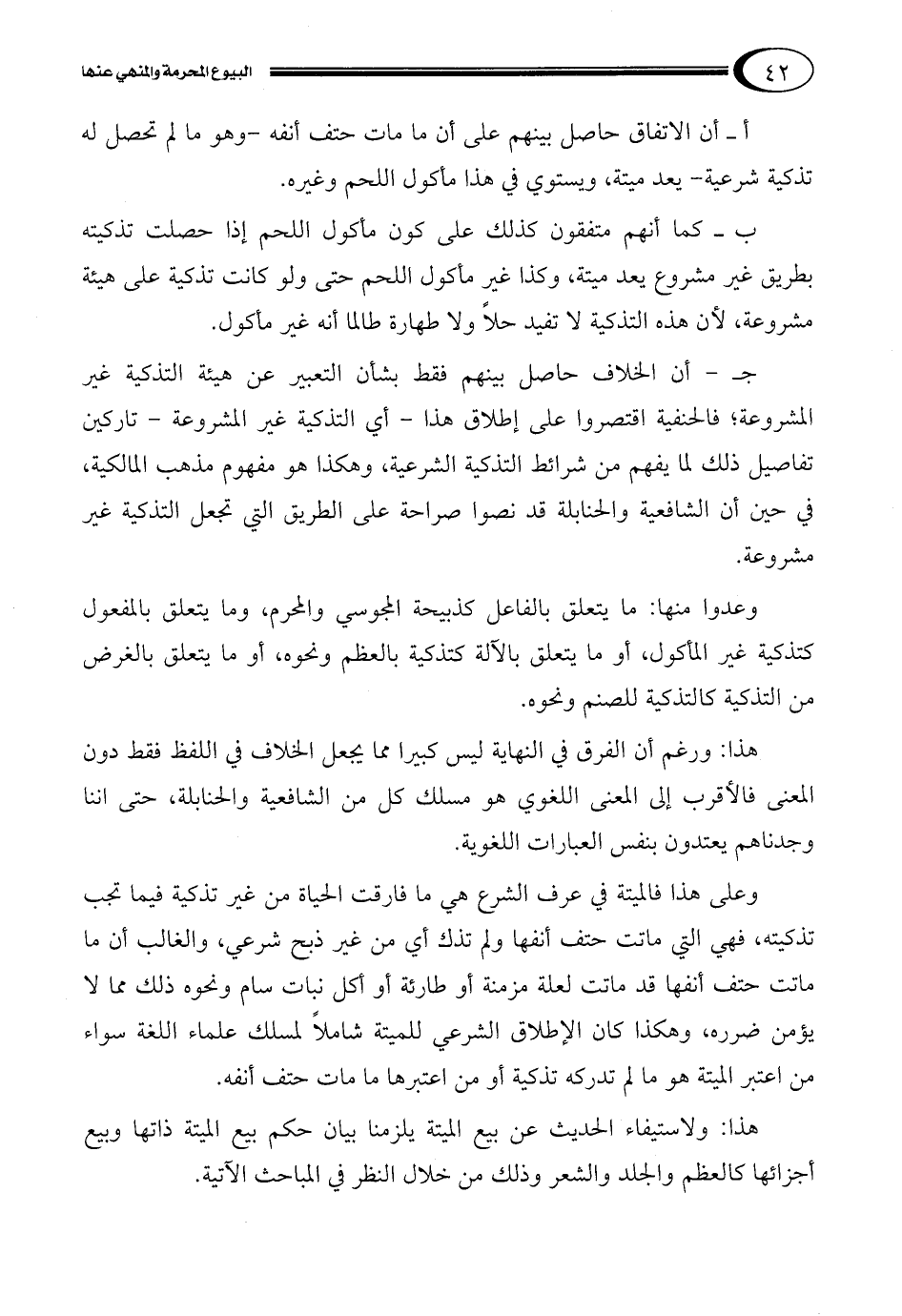 ب ـ كما أنهم متفقون كذلك على كون مأكول اللحم إذا حصلت تذكيته بطريق غير مشروع يعد ميتة، وكذا غير مأكول اللحم حتى ولو كانت تذكية على هيئة مشروعة، لأن هذه التذكية لا تفيد حلاً ولا طهارة طالما أنه غير مأكول.