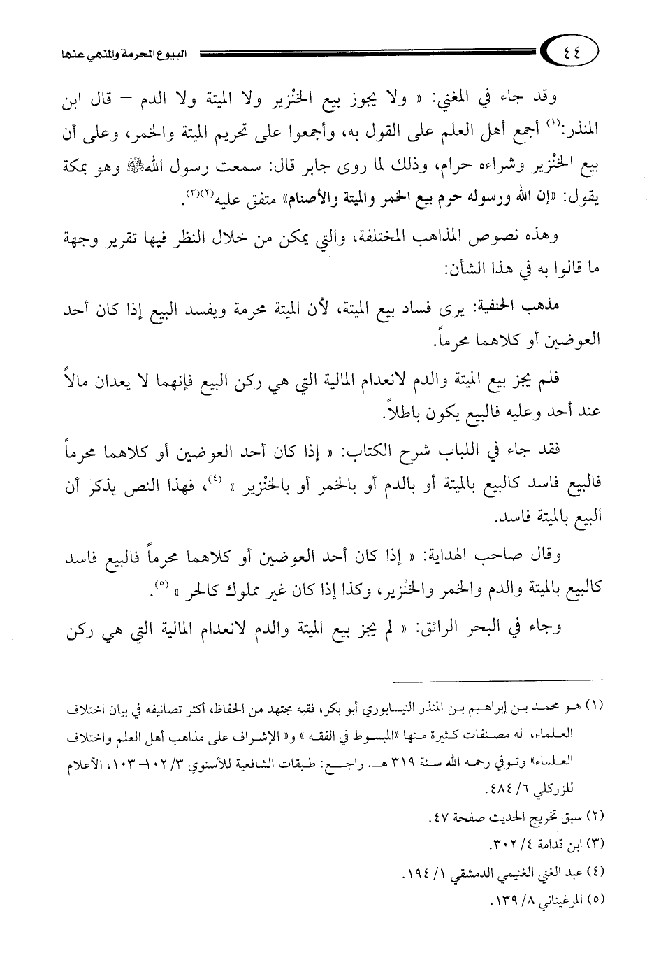 وقد جاء في المغني: "ولا يجوز بيع الخنْزير ولا الميتة ولا الدم – قال ابن المنذر:1 أجمع أهل العلم على القول به، وأجمعوا على تحريم الميتة والخمر، وعلى أن بيع الخنْزير وشراءه حرام، وذلك لما روى جابر قال: سمعت رسول الله صلى الله عليه وسلم وهو بمكة يقول: "إن الله ورسوله حرم بيع الخمر والميتة والأصنام" متفق عليه23.