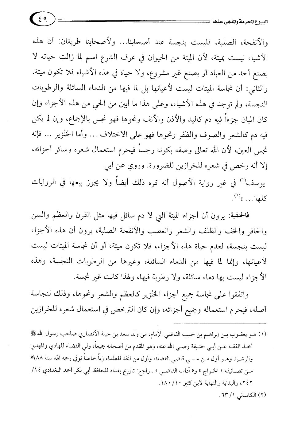 1 هو يعقوب بن إبراهيم بن حبيب القاضي الإمام، من ولد سعد بن حبتة الأنصاري صاحب رسول الله صلى الله عليه وسلم أخذ الفقه عن أبي حنيفة رضي الله عنه، وهو المقدم من أصحابه جميعاً، ولي القضاء للهادي والمهدي والرشيد وهو أول من سمي قاضي القضاة، وأول من اتخذ للعلماء زياً خاصاً توفي رحمه الله سنة 188 ? من تصانيفه "الخراج" و"آداب القاضي" راجع: تاريخ بغداد للحافظ أبي بكر أحمد البغدادي 14/242، والبداية والنهاية لابن كثير 10/180.